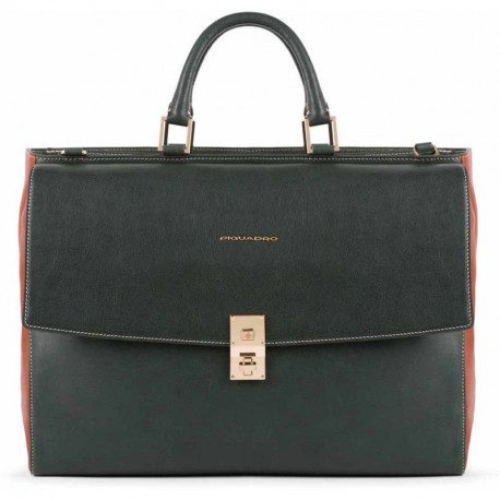 Piquadro DAFNE / Green-Tobacco Сумка-портфель двуручная с отделением для ноутбука 15,6" / iPad (40x30x13 см) CA5279DF / VECU Италия Гарантия: 2 года