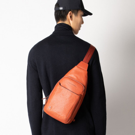 Кожаный рюкзак-слинг c отделением для планшета Piquadro Black SQUARE/Orange (Арт. CA4827B3_AR). Элегантная городская модель рюкзака на одно плечо.