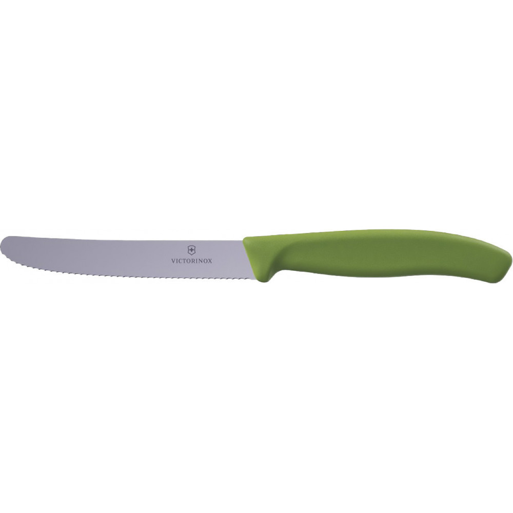 Victorinox SWISS CLASSIC Нож для томатов Tomato&Table с лезвием 11 см / закругленный кончик / серрейторное / с зеленой ручкой (BP) 111-11-w Швейцария 6.7834.C1 Гарантия: пожизненная
