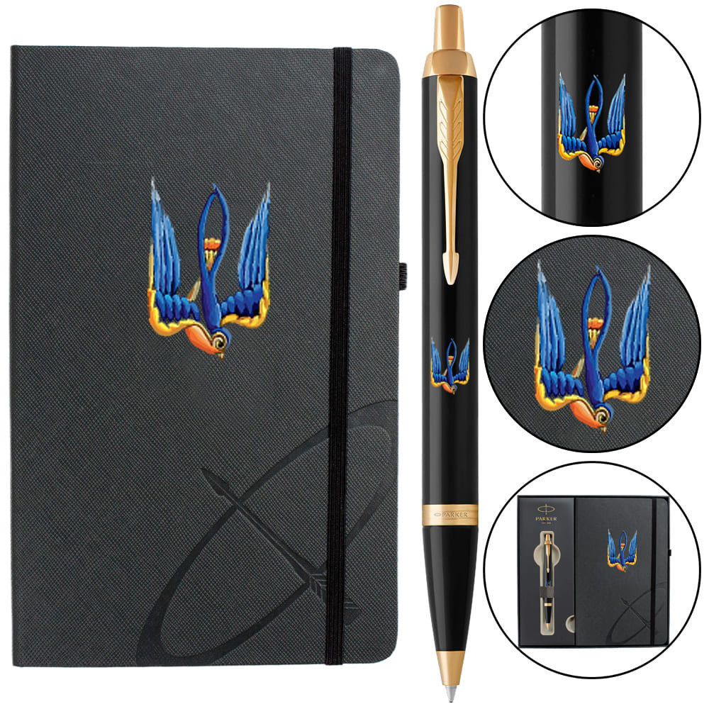 Эксклюзивный набор: ручка шариковая IM UKRAINE Black GT BP с изображением Трезубец-ласточка + блокнот Parker + подарочная упаковка GIFT24 (Франция) Гарантия: 2 года