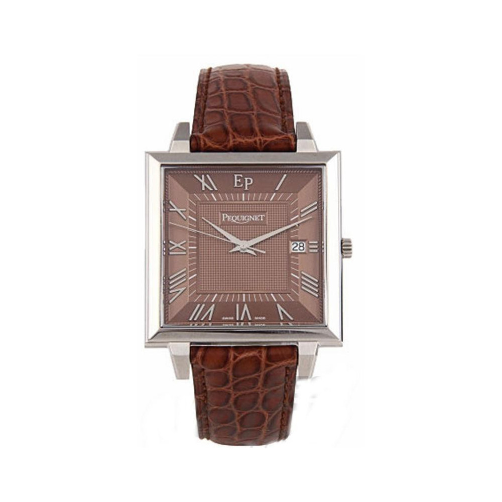 Pequignet CLASSIQUES CARRÉES 7240453CG - чоловічий кварцовий годинник Classiques Carrées з квадратним корпусом і коричневим ремінцем зі шкіри крокодила. Бездоганний годинник, який поєднує французьку стриману розкіш та точний швейцарський механізм. Непідвладний часу годинник, який не звертає увагу на примхи моди.