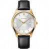 Wenger CITY CLASSIC чоловічий кварцовий годинник / сріблястий циферблат / чорний шкіряний ремінець / 30м / Мінеральне скло з сапфіровим покриттям / золотистий сталевий корпус-43мм 01.1441.106 Швейцарія Гарантія: 3 роки