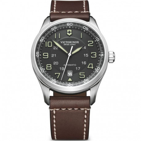 Victorinox Swiss Army AIRBOSS Mechanical чоловічий годинник / автоматична механіка / чорний циферблат / коричневий шкіряний ремінець / 100м / Сапфірове антиблікове скло / Чорний сталевий корпус-42мм / Запас ходу-38год 241886 (Швейцарія) Гарантія: 5 років