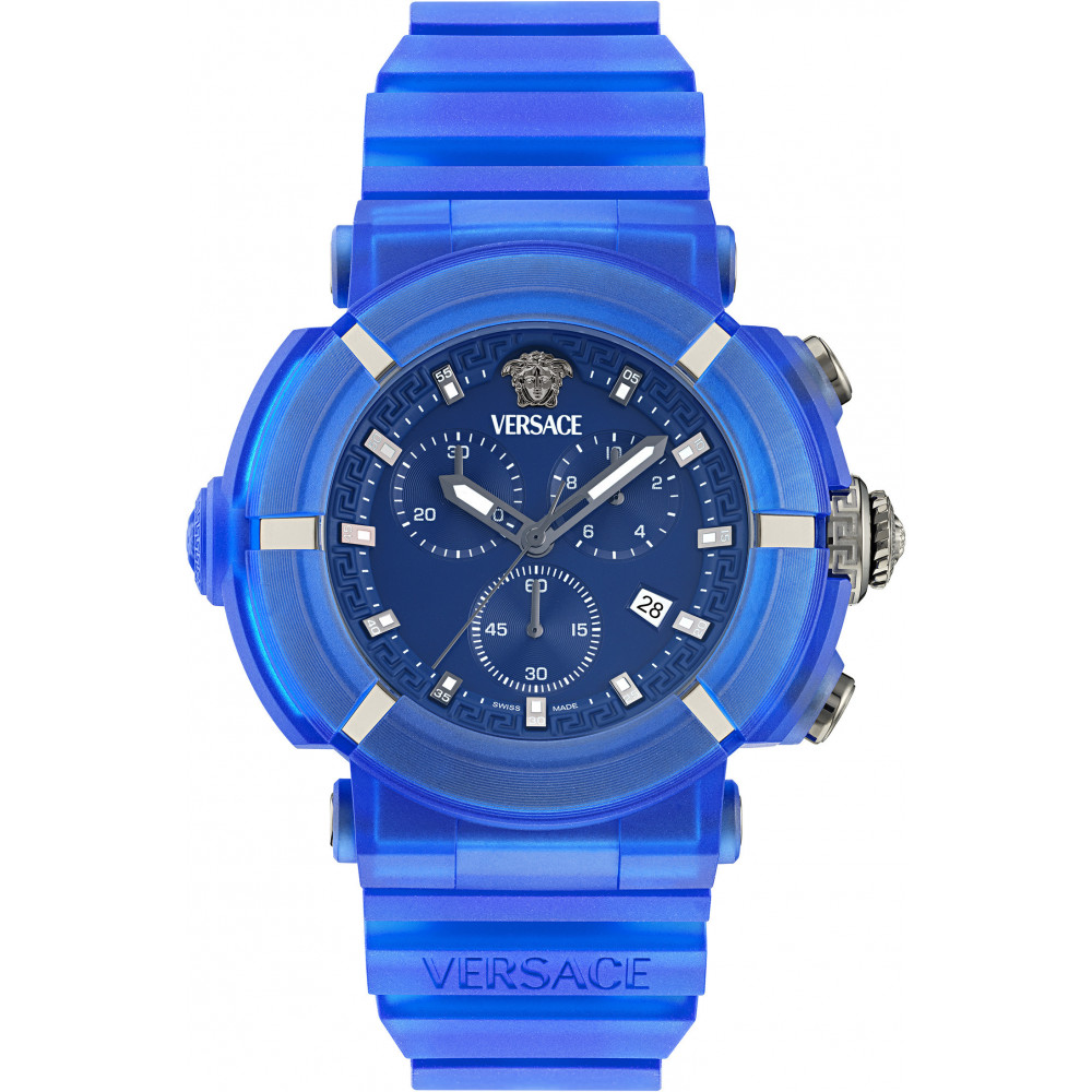 У наявностіVersace REAL ACTIVE CHRONO 45мм/годинник-унісекс/кварцовий/синій циферблат/синій ремінець /50м/Сапфірове антиблікове скло/Керамічний корпус Швейцарія VE0L00625 Гарантія: 2 роки