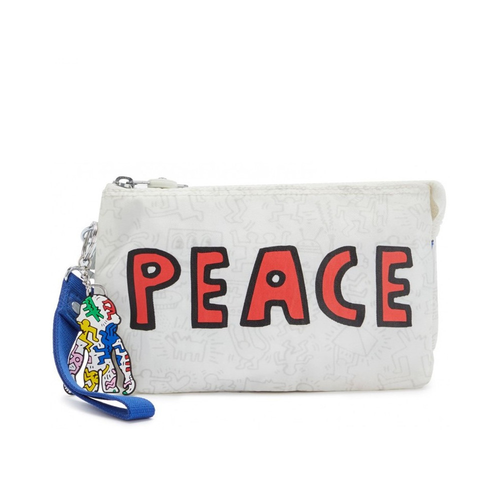 Kipling біла в принт KEITH HARING / Kh Public Art Сумочка-клатч Creativity XL на блискавці, з ремінцем на зап'ясток (21,5x13,5x4 см) KI542568I Бельгія Гарантія: 2 роки