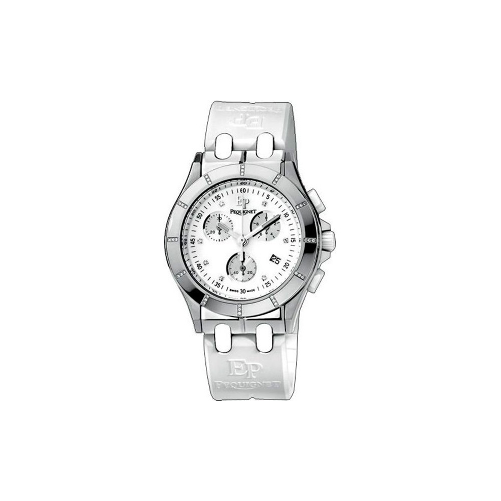 MOOREA Triomphe Chrono женский кварцевый хронограф / белый циферблат с бриллиантами / белый каучуковый ремешок / 100м / Стальной корпус-38мм с бриллиантами Pequignet 1335419cd-31